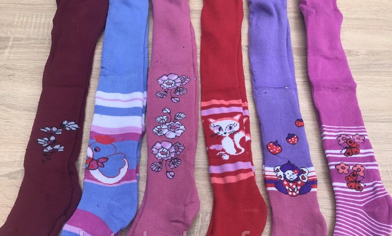 Все колготки упакованы разные расцветки и размеры в упаковке. Размеры на этикетках не соответствуют. Все колготки идут ростовками до 7-8 лет. Колготки нужно продавать путем распаковывания и примерки к росту ребенка.